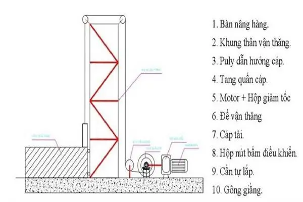 Cấu tạo vận thăng nâng hàng