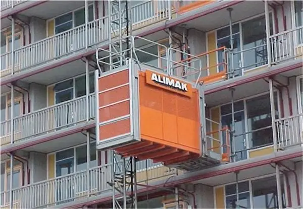 - Bình thường nếu muốn đi lên các tầng cao của ngôi nhà người ta sẽ leo lên các thanh của bộ giàn giáo được lắp cố định trên một mặt phẳng thường là nền của ngôi nhà, nhờ các tầng chồng lên nhau như một cái thang leo. Các hàng hóa (gạch, xi măng, cát, đá,…) sẽ được người ở trên cao dùng ròng rọc kéo lên.